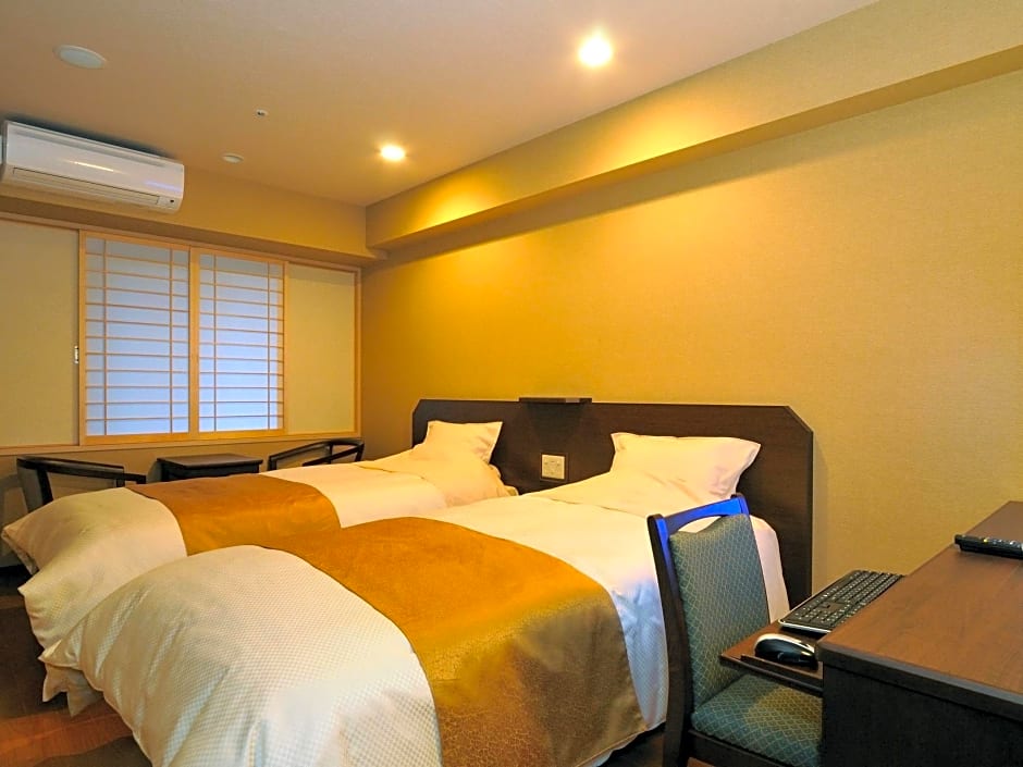 Featuring free toiletries, this twin room includes a shared bathroom with a bidet. The twin room features tatami, a safe deposit box, an electric kettle, heating and a flat-screen TV. The unit has 2 futons.
